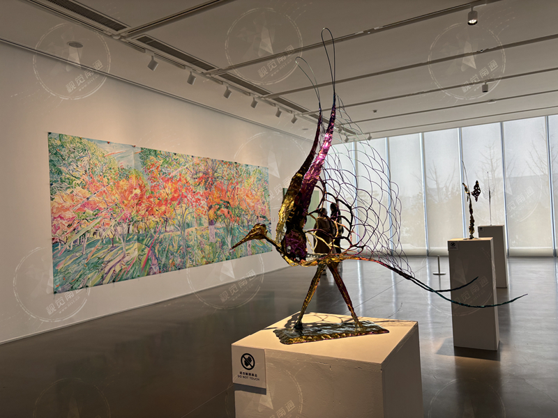 本次展覽由上海著名當代藝術(shù)家李磊擔任總策劃,共展出137位(組)藝術(shù)家逾200件具有代表性的當代藝術(shù)作品,涵蓋了架上繪畫、架上綜合、雕塑、影像、裝置、多媒體藝術(shù)及數(shù)字繪畫等全方位藝術(shù)媒介。與地板合二為一的河馬雕塑、在門板上創(chuàng)作的繪畫、沉浸式互動設(shè)計、普通事物的裝置重構(gòu)……“奇妙”或許是觀眾對其的第一印象,繼而產(chǎn)生“好奇”,接著再展開對幸福的“感知”和“想象”。