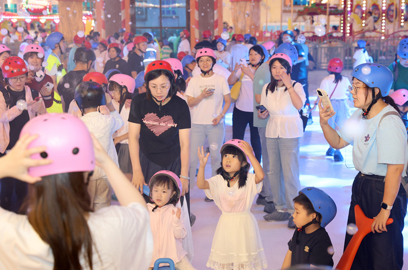 2024年8月4日,眾多游客在位于崇川區(qū)幸福街道的森迪冰雪樂園賞冰玩雪、消暑休閑。這座夢幻般的冰雪王國迎來了暑期以來的最大客流高峰,單日入園人數(shù)突破8500人次大關(guān),刷新了冰雪樂園歷史紀(jì)錄,在炎炎夏日中掀起了強(qiáng)勁的“冰雪熱”。