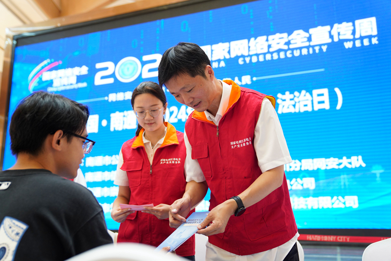 發(fā)布時(shí)間:2024-09-14 編輯:王婷 來源:視覺南通網(wǎng)“今天我了解了當(dāng)前最新的網(wǎng)絡(luò)安全形勢(shì),網(wǎng)絡(luò)安全需要我們共同守護(hù)?!薄拔覍W(xué)到了很多辦公中的網(wǎng)絡(luò)安全防護(hù)方法,回去我要和大家分享?!薄?0日,在國(guó)網(wǎng)南通供電公司職工活動(dòng)中心,“網(wǎng)絡(luò)安全為人民、網(wǎng)絡(luò)安全靠人民”主題活動(dòng)吸引了眾多供電員工參與。活動(dòng)通過現(xiàn)場(chǎng)簽名、安全宣講、互動(dòng)答疑、有獎(jiǎng)問答等環(huán)節(jié),將網(wǎng)絡(luò)安全知識(shí)普及給員工們,進(jìn)一步增強(qiáng)員工的網(wǎng)絡(luò)安全意識(shí),營(yíng)造安全有序的網(wǎng)絡(luò)空間。