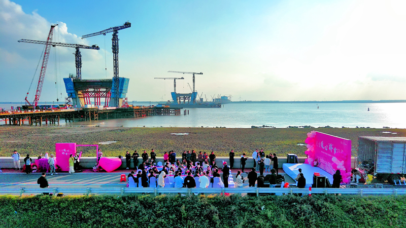 發(fā)布時間:2024-11-21 編輯:王婷 來源:視覺南通網(wǎng)“關(guān)愛暖心‘橋’首以待”主題活動是以“看大橋、講大橋、唱大橋、愛大橋”為主要內(nèi)容。當天,嘉賓們來到初具規(guī)模的崇啟公鐵長江大橋工地觀摩,感受大橋建設日新月異的變化。
