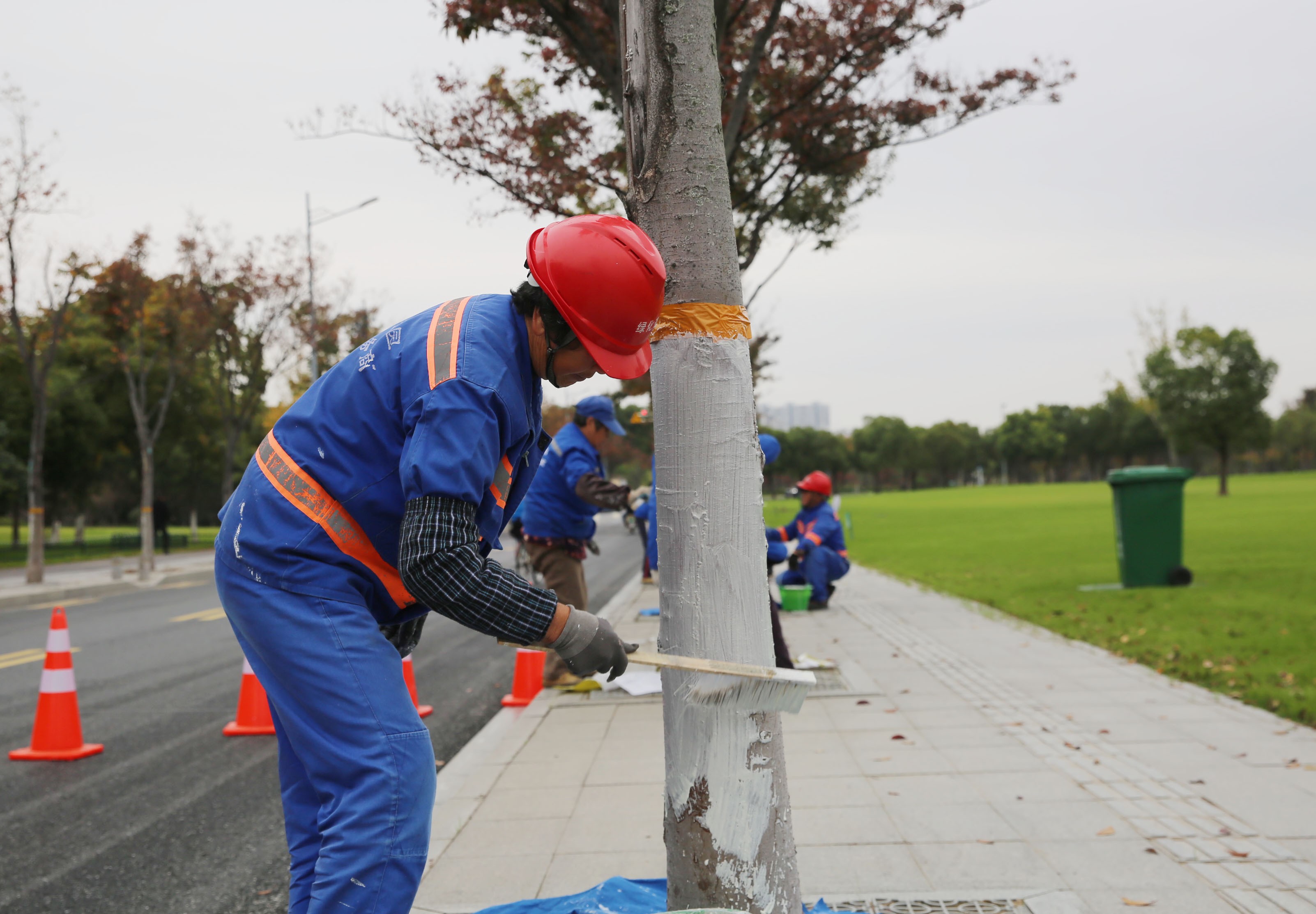 發(fā)布時(shí)間:2024-11-22 編輯:王婷 來源:視覺南通網(wǎng)11月20日,綠化作業(yè)人員在市區(qū)府東路為道路旁的樹木涂白穿“新衣”。據(jù)了解,涂白是秋冬季樹木養(yǎng)護(hù)管理的一項(xiàng)重點(diǎn)工作,是預(yù)防樹木遭受蟲害和凍害的有效措施。涂白劑有反光作用,能夠預(yù)防日灼和凍傷,而涂白劑中的石硫合劑可以殺死寄生在樹干上的病菌和越冬蟲卵,有效提高了樹木抗性,促進(jìn)樹木的健康生長(zhǎng)。