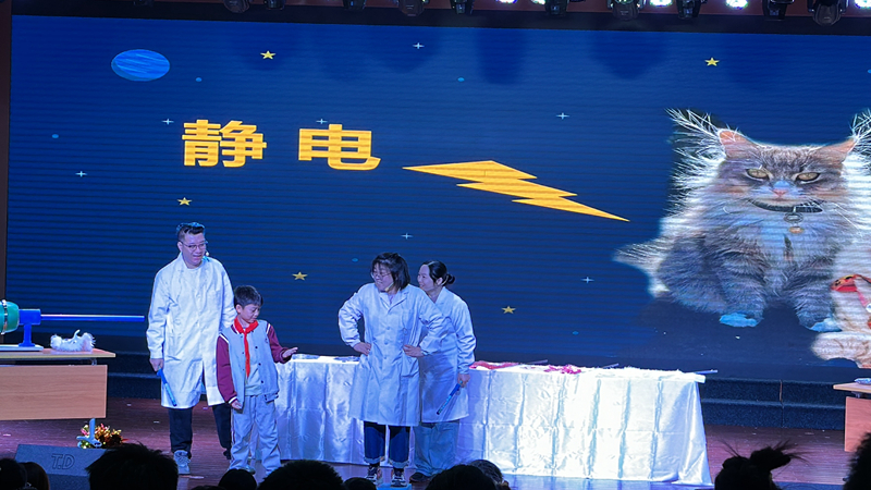 發(fā)布時(shí)間:2024-11-22 編輯:王婷 來源:視覺南通網(wǎng)“鹽和糖是我們家里做飯時(shí)最常用的調(diào)料,大家知道用它們還能玩出什么新花樣嗎?”“哇,好神奇!”11月20日上午,從通師一附報(bào)告廳里傳出陣陣歡笑聲和驚呼聲。江蘇省優(yōu)秀科學(xué)實(shí)驗(yàn)及表演項(xiàng)目巡演活動(dòng)在此舉行,來自全省多家科技館的輔導(dǎo)員,用有趣的科學(xué)實(shí)驗(yàn)、科普短劇,為同學(xué)們帶來一堂沉浸式科學(xué)課。