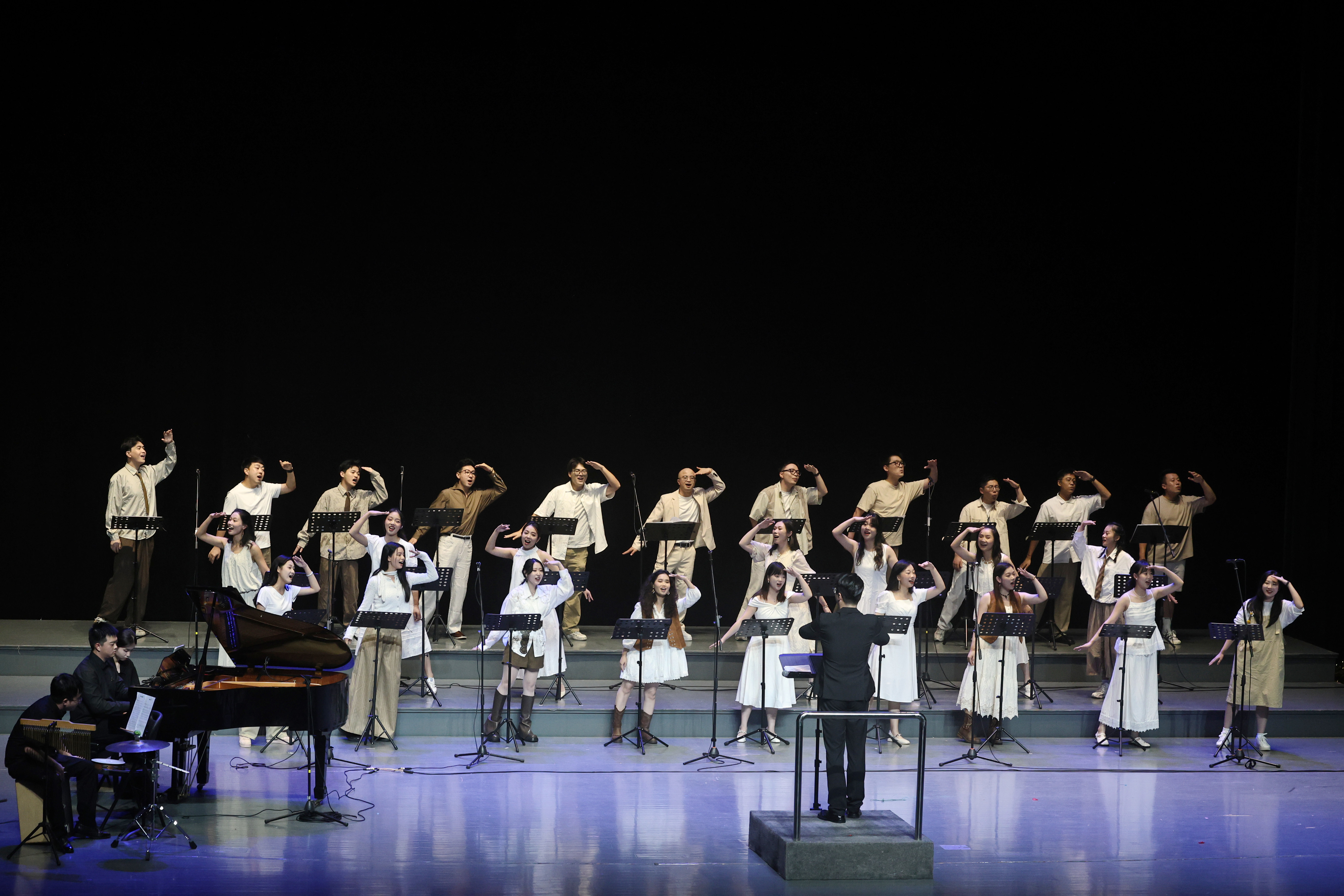 本場音樂會精選多首曲目,通過多聲部合唱的創(chuàng)新演繹,賦予《蝴蝶泉邊》《勇氣》《孤勇者》等歌曲全新藝術(shù)生命力。合唱團成員以精準(zhǔn)的音準(zhǔn)、豐富的層次感和飽滿的情感表達,展現(xiàn)了流行音樂與合唱藝術(shù)的深度融合,既保留了原曲的流行特質(zhì),又增添了合唱特有的和聲魅力。