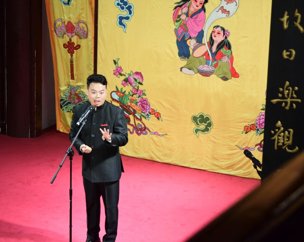 演出在相聲《歡聲笑語(yǔ)》《語(yǔ)言的藝術(shù)》中拉開(kāi)序幕,表演者鴻義和木木以幽默的語(yǔ)言瞬間點(diǎn)燃現(xiàn)場(chǎng)氛圍,展現(xiàn)了相聲藝術(shù)“歡聲笑語(yǔ)傳萬(wàn)家”的獨(dú)特魅力。隨后,揚(yáng)州評(píng)話《陳毅過(guò)江》登場(chǎng),表演者陳祝武以地道的揚(yáng)州方言、精湛的表演技藝,生動(dòng)再現(xiàn)了陳毅過(guò)江的經(jīng)典故事,讓觀眾沉浸式感受揚(yáng)州評(píng)話的韻味;吳佳澎、季逢春帶來(lái)的相聲《我把山歌捧出來(lái)》,將山歌元素與相聲藝術(shù)巧妙融合,呈現(xiàn)別樣藝術(shù)風(fēng)格;傳統(tǒng)評(píng)彈開(kāi)篇《賞中秋》由曹軼、倪晨演繹,婉轉(zhuǎn)的唱腔、典雅的韻味,帶領(lǐng)現(xiàn)場(chǎng)觀眾領(lǐng)略江南評(píng)彈的細(xì)膩與唯美?;顒?dòng)尾聲,快板《紅柳樓》表演者孫嘯以明快的節(jié)奏、清晰的口齒,將作品內(nèi)容精彩呈現(xiàn),更是贏得現(xiàn)場(chǎng)觀眾的陣陣掌聲。