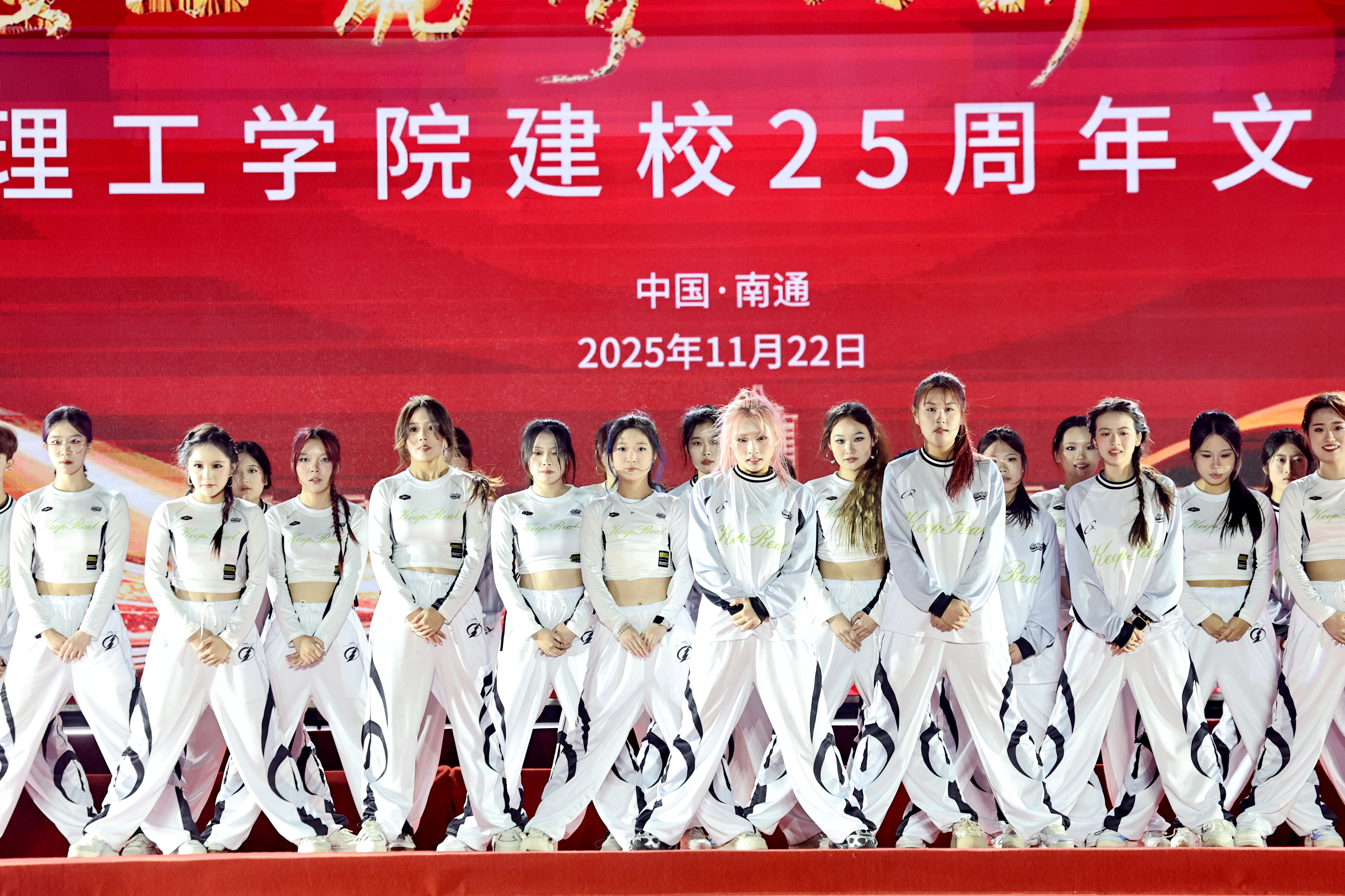 晚會開篇通過情景表演《百年情思1》,以沉浸式演繹再現(xiàn)張謇先生“父教育母實業(yè)”的理念,巧妙聯(lián)結新時代教育使命。隨后,舞蹈《開拓》、歌舞《我們都是追夢人》、朗誦《江海筑夢繪藍圖》、海安花鼓《潮聲鼓韻》等節(jié)目依次登臺。其中,來自俄羅斯交換生帶來的歌舞《莫斯科的風,青春的歌》為晚會增添了國際元素,南通理工學院管弦樂團首次亮相,以《紫瑯序曲》《茉莉花》兩首曲目用悠揚旋律為母校獻上真摯祝福。科技街舞環(huán)節(jié)創(chuàng)新融合“街舞+機器人表演”,青春舞步與科技元素的碰撞帶來極具未來感的視覺沖擊,成為全場亮點。最后,晚會在全場齊唱《我愛你中國》與《校歌》的嘹亮歌聲中圓滿落幕。整場活動通過藝術化的表現(xiàn)形式,不僅回顧了學校25年來的發(fā)展歷程,更展現(xiàn)了南通理工學院全體師生在新時代背景下奮發(fā)向前的精神面貌。