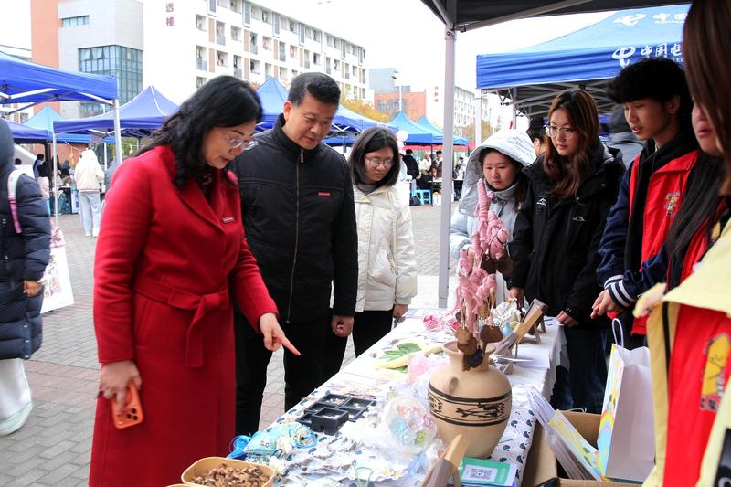 在活動現(xiàn)場,展售區(qū)品類豐富,涵蓋科技制作、學(xué)科競賽成果等創(chuàng)新創(chuàng)業(yè)作品,文創(chuàng)設(shè)計、手工作品等文化創(chuàng)意產(chǎn)品,以及剪紙、風(fēng)箏、藍(lán)印花布等非遺傳承作品與相關(guān)表演,公益服務(wù)類項目則涉及教育、環(huán)保、鄉(xiāng)村振興等多個領(lǐng)域。專業(yè)技能展示亮點紛呈,學(xué)前一院的扎染、管理學(xué)院的咖啡制作與空乘急救服務(wù)、智能信息學(xué)院的機器人與3D打印、音樂舞蹈學(xué)院的AI作曲編創(chuàng)與點唱服務(wù)、體育學(xué)院的射擊體驗與武術(shù)表演,充分展現(xiàn)各專業(yè)特色。