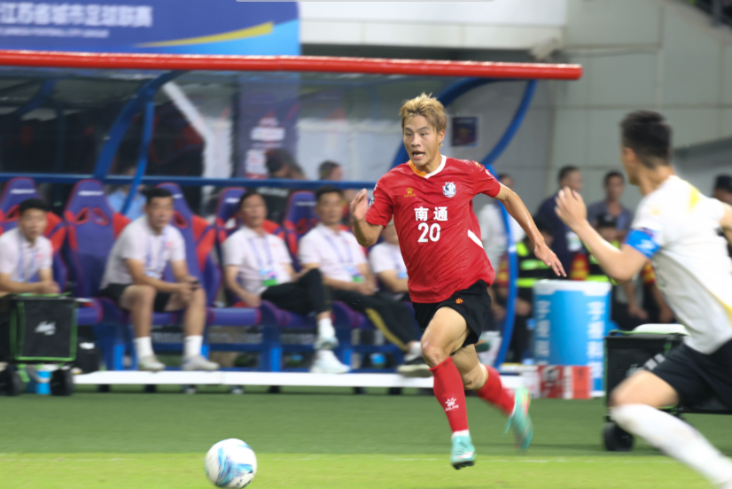 今年“蘇超”聯(lián)賽,南通隊對陣徐州隊的比賽中,張浩楠在禁區(qū)外接到隊友傳球,稍作調整后起腳射門,足球劃出弧線飛入球門。進球后,全場歡呼,隊友們沖向他緊緊相擁。