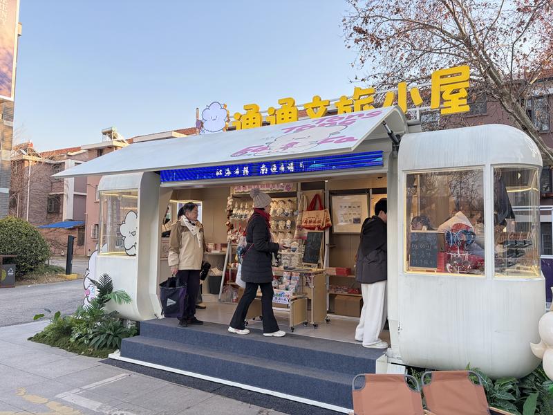 值得關(guān)注的是,這個元旦期間,文創(chuàng)商店上新了多款特色好物。門店旁的“通通文旅小屋”內(nèi),“蘇小狼”新年玩偶、“蘇小狼”系列冰箱貼暖心亮相;文創(chuàng)商店內(nèi),富美帽飾博物館主題單品等獨具南通本土特色的文創(chuàng)產(chǎn)品驚喜“登場”,讓游客樂購之余,可以將地道“南通禮物”帶回家。